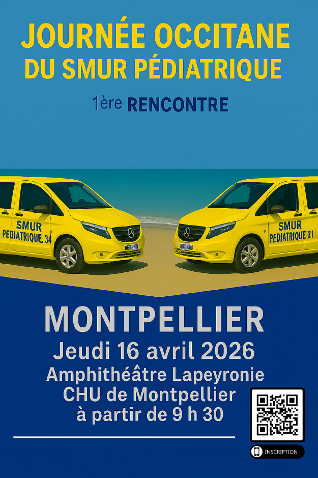 Nous avons le plaisir de vous inviter à la 1ère Journée Occitane des SMUR Pédiatriques, qui se tiendra le jeudi 16 avril 2026 dans l'amphithéâtre Lapeyronie, à partir de 9h30.
