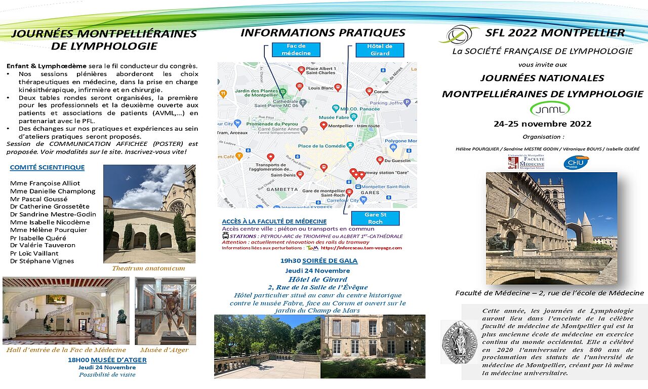 Organisées par le docteur Sandrine Mestre et Hélène Pourquier, kinésithérapeute, sous l’égide du Professeure Isabelle Quéré, responsable du Département des maladies vasculaires rares et du Centre de référence et constitutif des maladies vasculaires rares, ces Journées nationales montpelliéraines de lymphologie (JNML) sont dédiées aux enfants et au lymphœdème. Elles auront lieu dans l’enceinte de la célèbre faculté de médecine de Montpellier, la plus ancienne école de médecine en exercice continu du monde occidental.